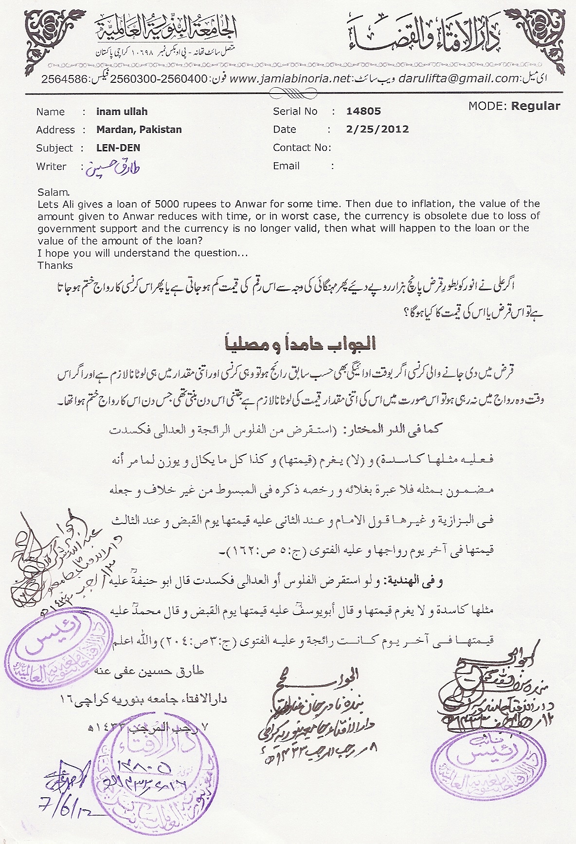 کرنسی ڈی ویلیوہونے کی صورت میں قرض کی واپسی کا حکم