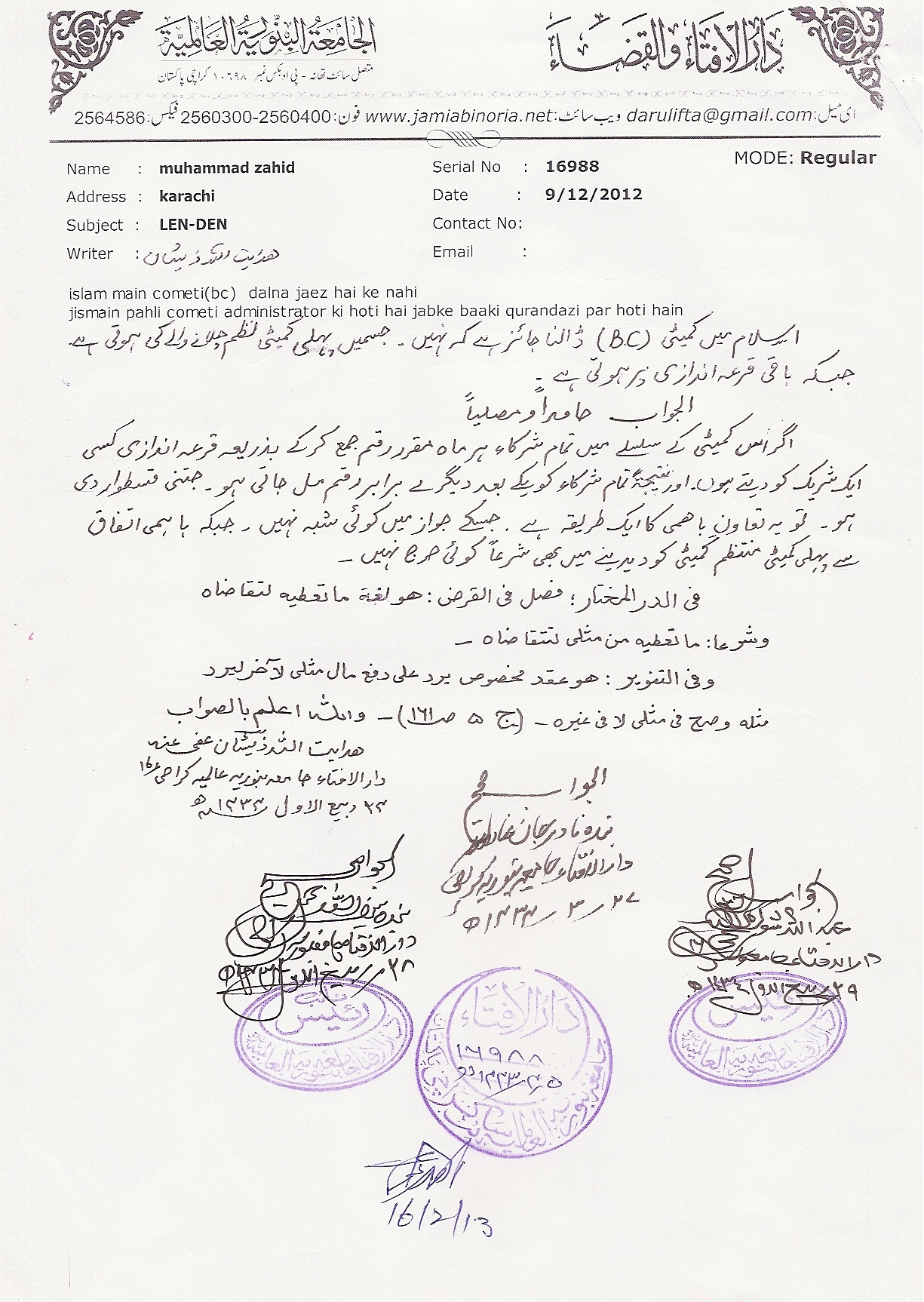کیاکمیٹی(BC)ڈالناجائز ہے؟