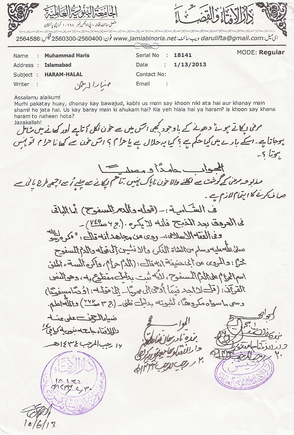 مذبوحہ جانور کے گوشت سے نکلنے والا خون اگر کھانا پکاتے ہوئے نظر آجائے؟