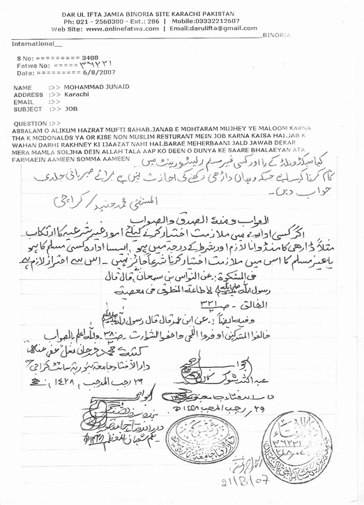 مکڈونلڈز میں ملازمت کا شرعی حکم