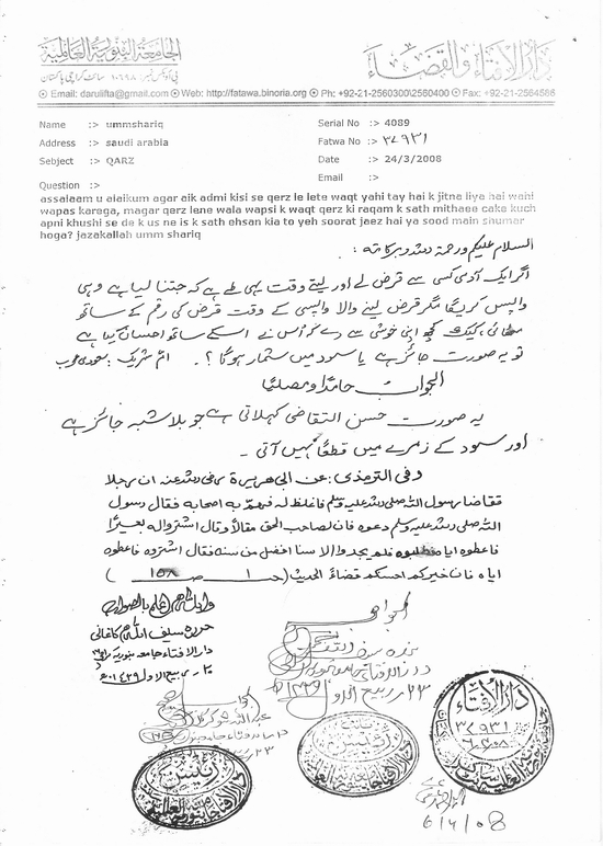 قرض کی واپسی زیادتی کے ساتھ ، حسن التقاضی یا سود ؟