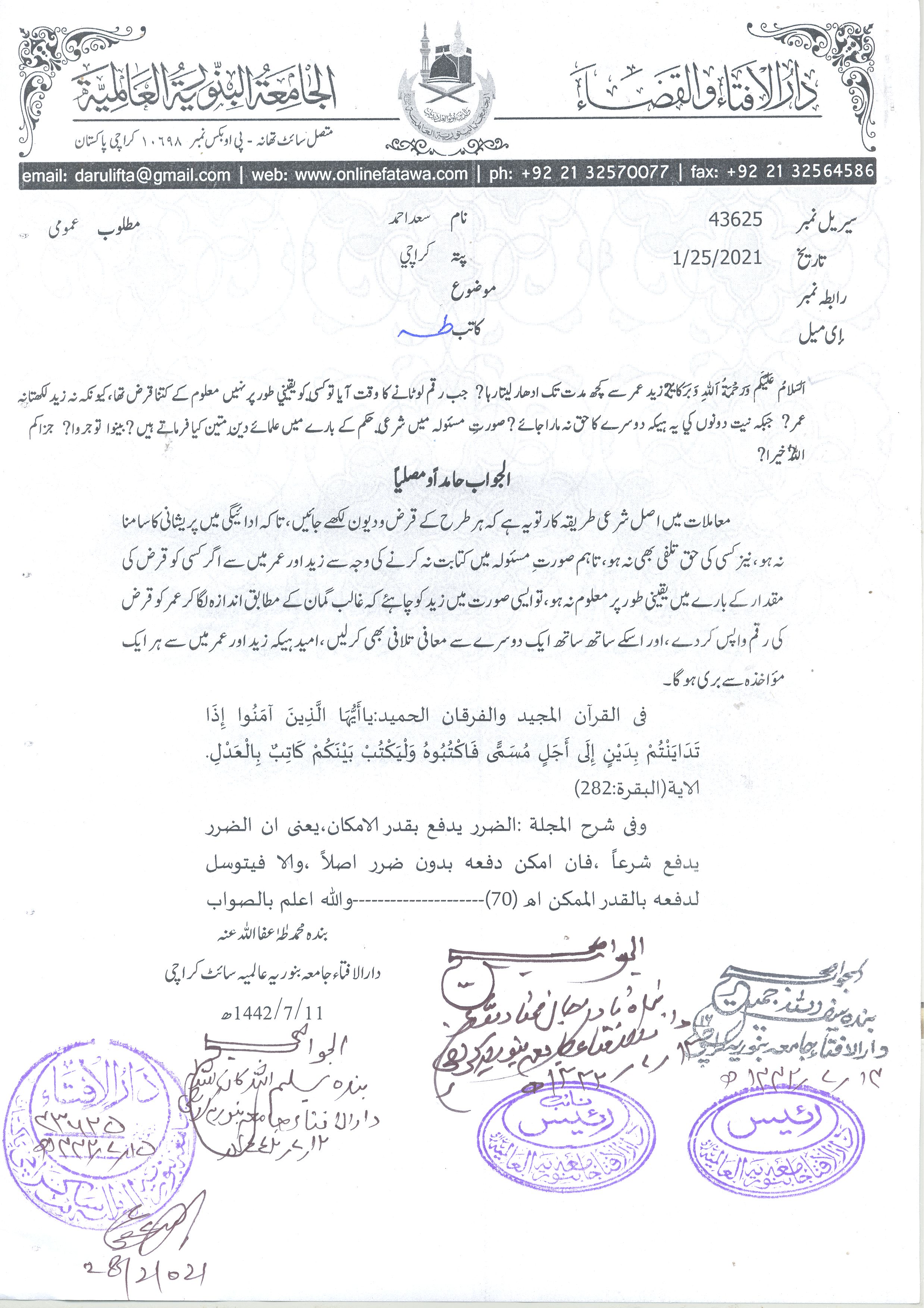 قرض کی واپسی زیادتی کے ساتھ ، حسن التقاضی یا سود ؟