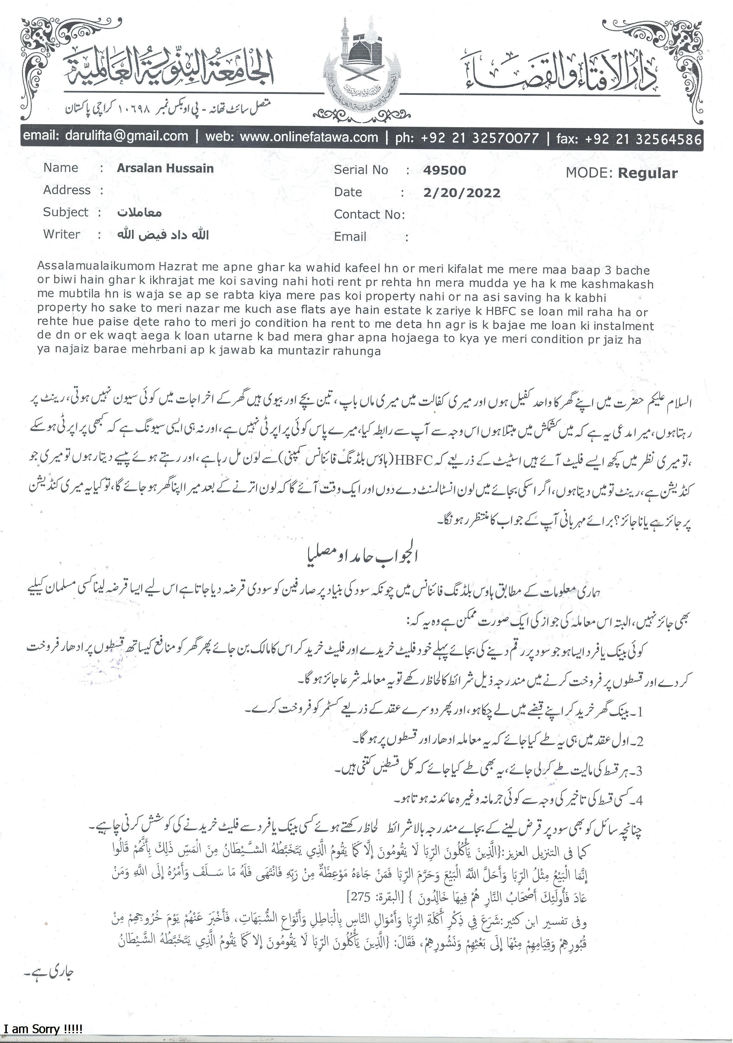 ایچ بی ایف سی (HBFC) سے لون لینے کا حکم