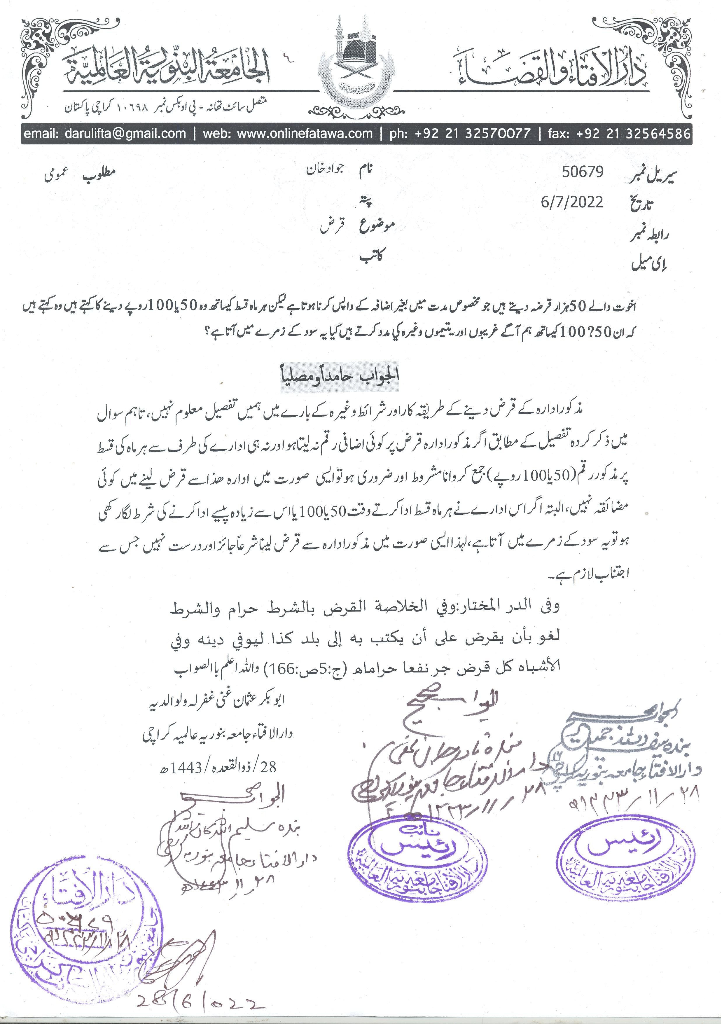 اخوت والوں سے قرض لینے اور ماہانہ صدقہ کا حکم
