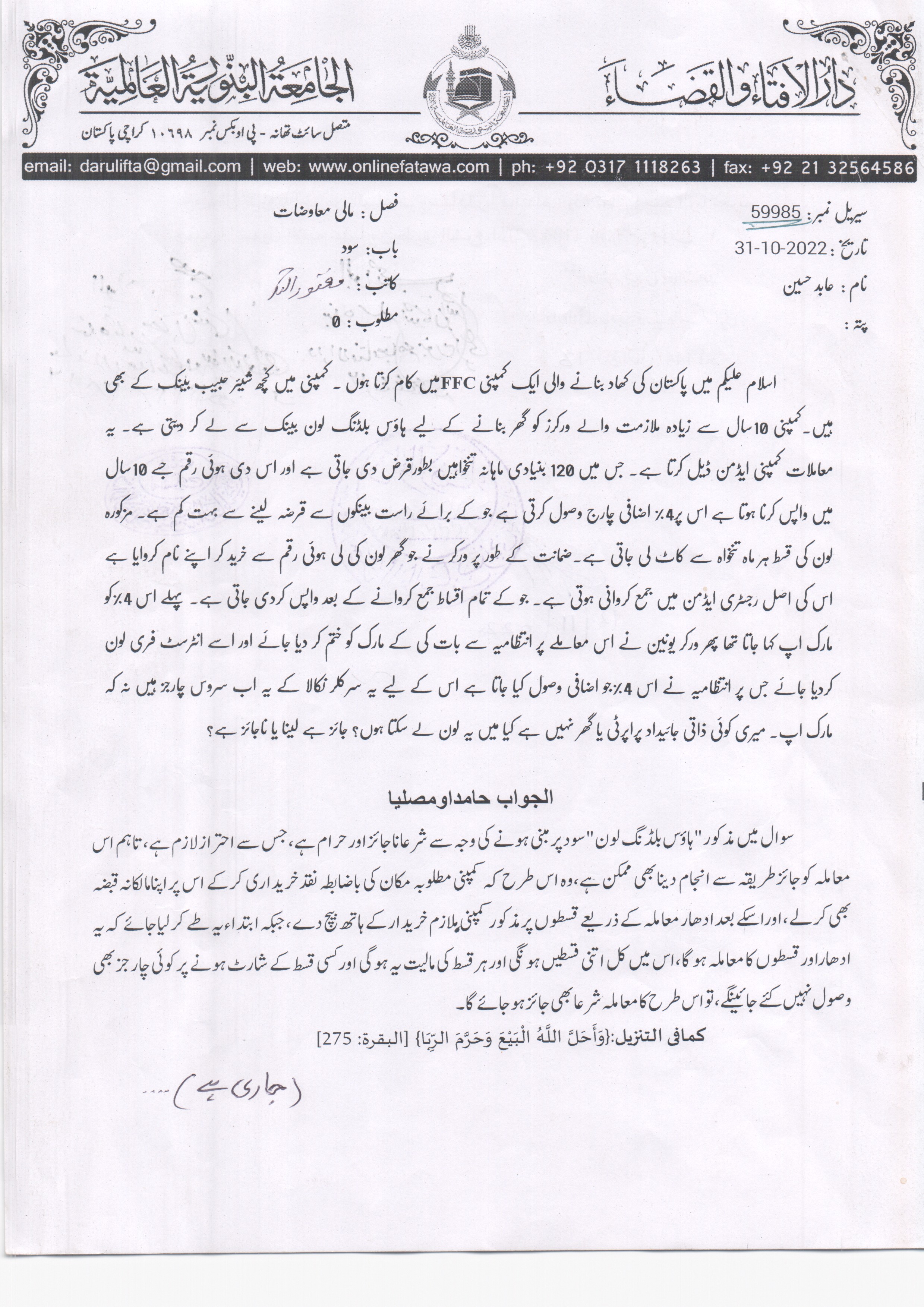 ایچ بی ایف سی (HBFC) سے لون لینے کا حکم