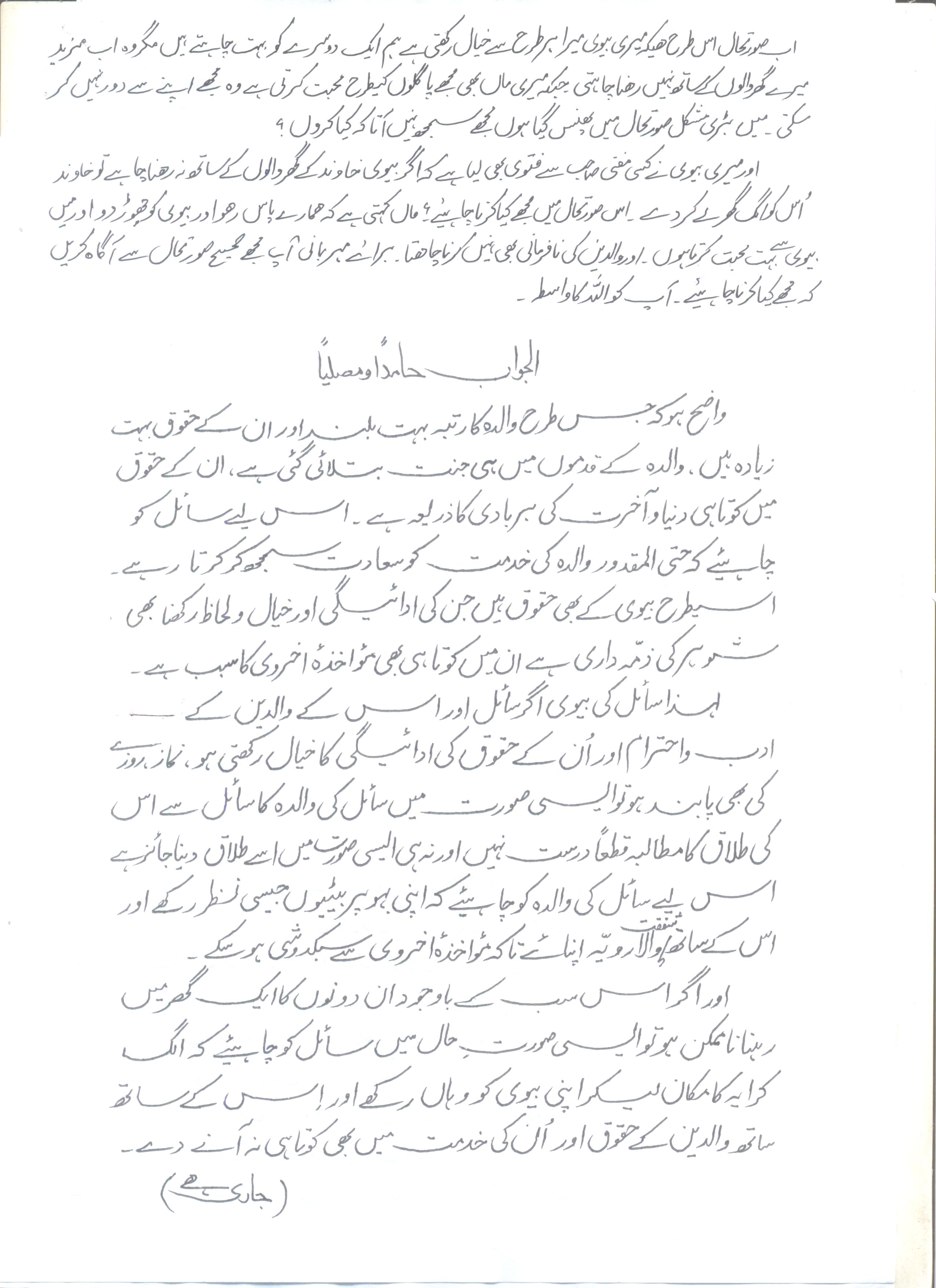 والدہ کے کہنے پر بیوی کو طلاق دینا