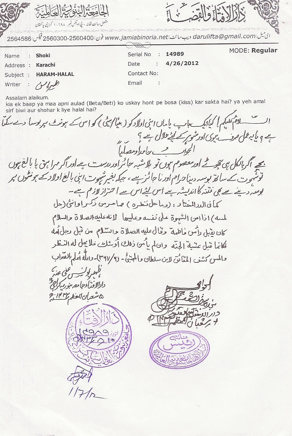والدین کا اپنی اولاد کے ہونٹوں پر بوسہ دینا