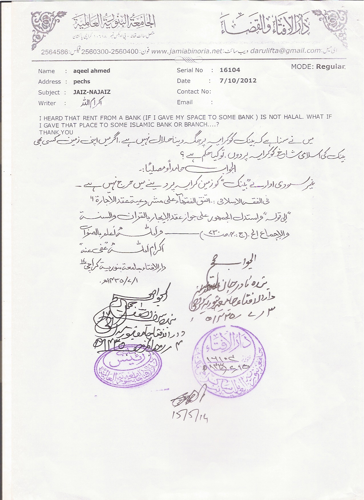 • غیرسودی بینکوں کے ساتھ اجارے کا معاملہ کرنا