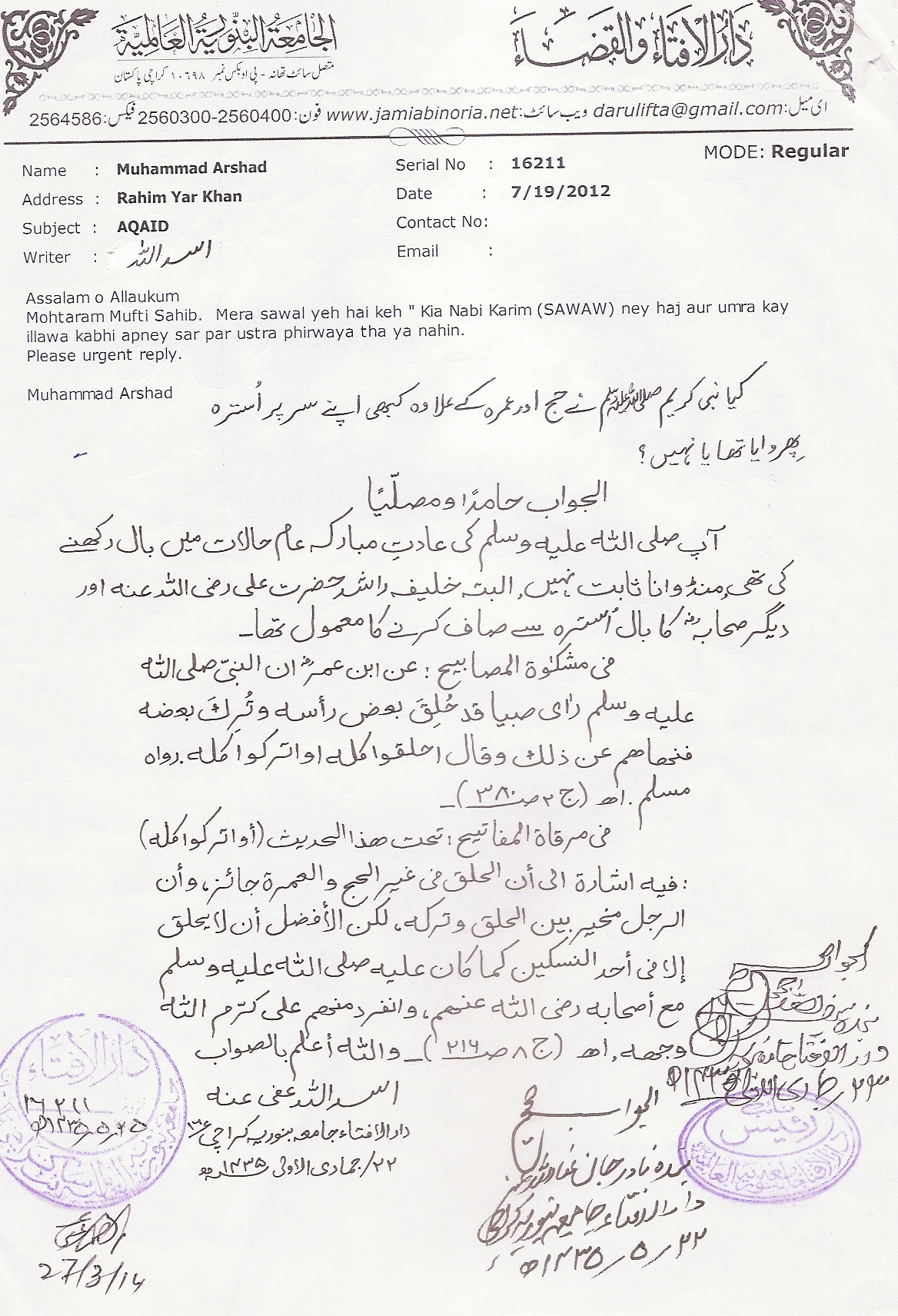 کیا نبی اکرم صلی اللہ علیہ و سلم نے حج و عمرہ کے علاوہ اپنے سر پر استرہ پھروایا تھا ؟