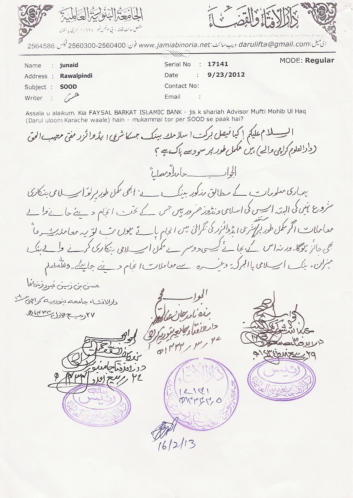 فیصل برکت اسلامک بینک غیرسودی بینک ہے؟