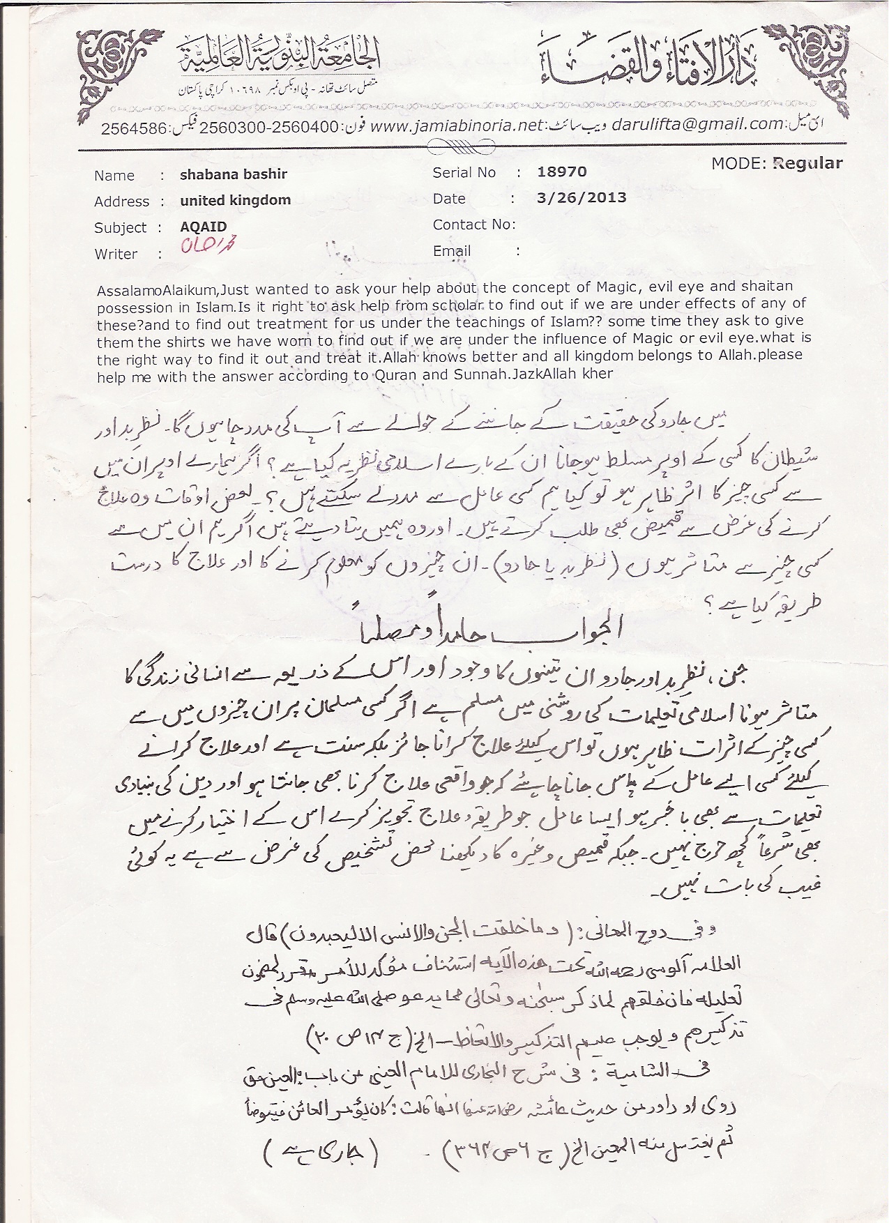 نظر کا لگنا اوراس سلسلے میں تعویز لکھ کر گلے میں ڈالنے کا حکم