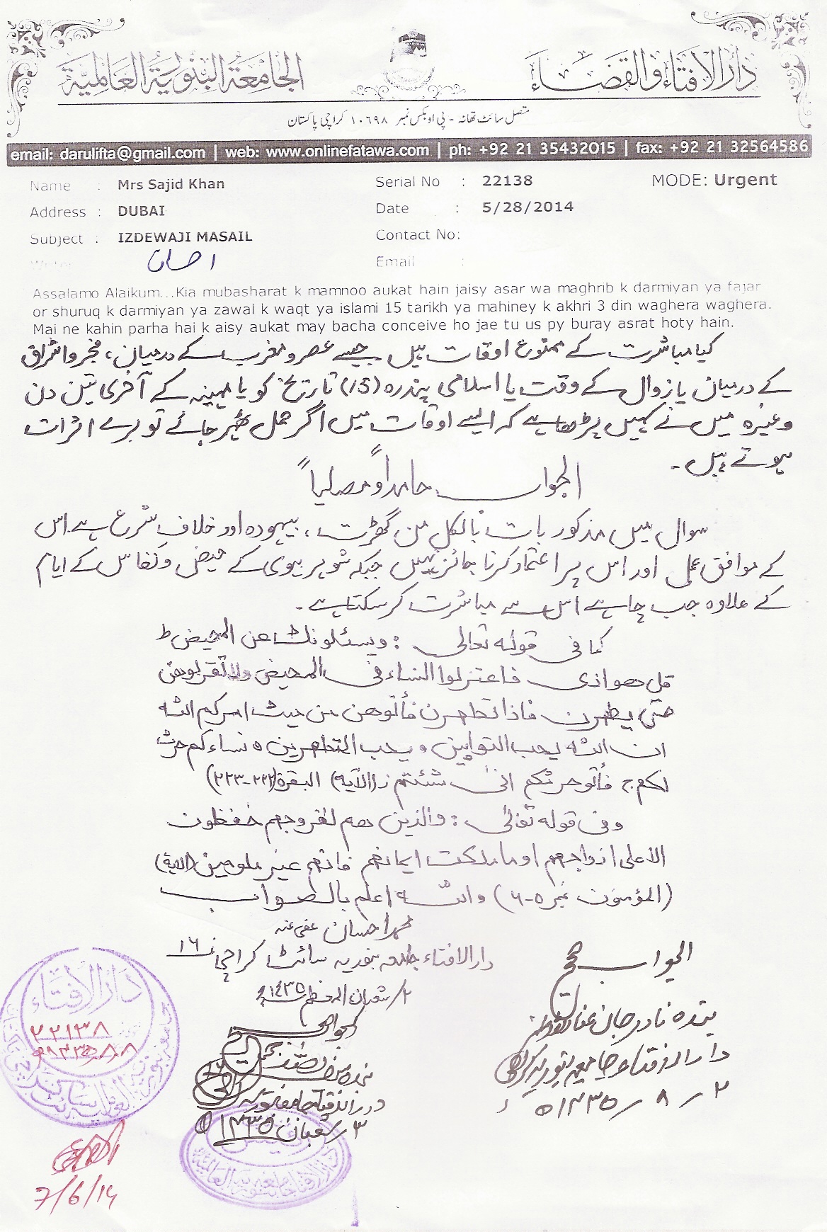مباشرت کے ممنوع اوقات کونسے ہیں ؟