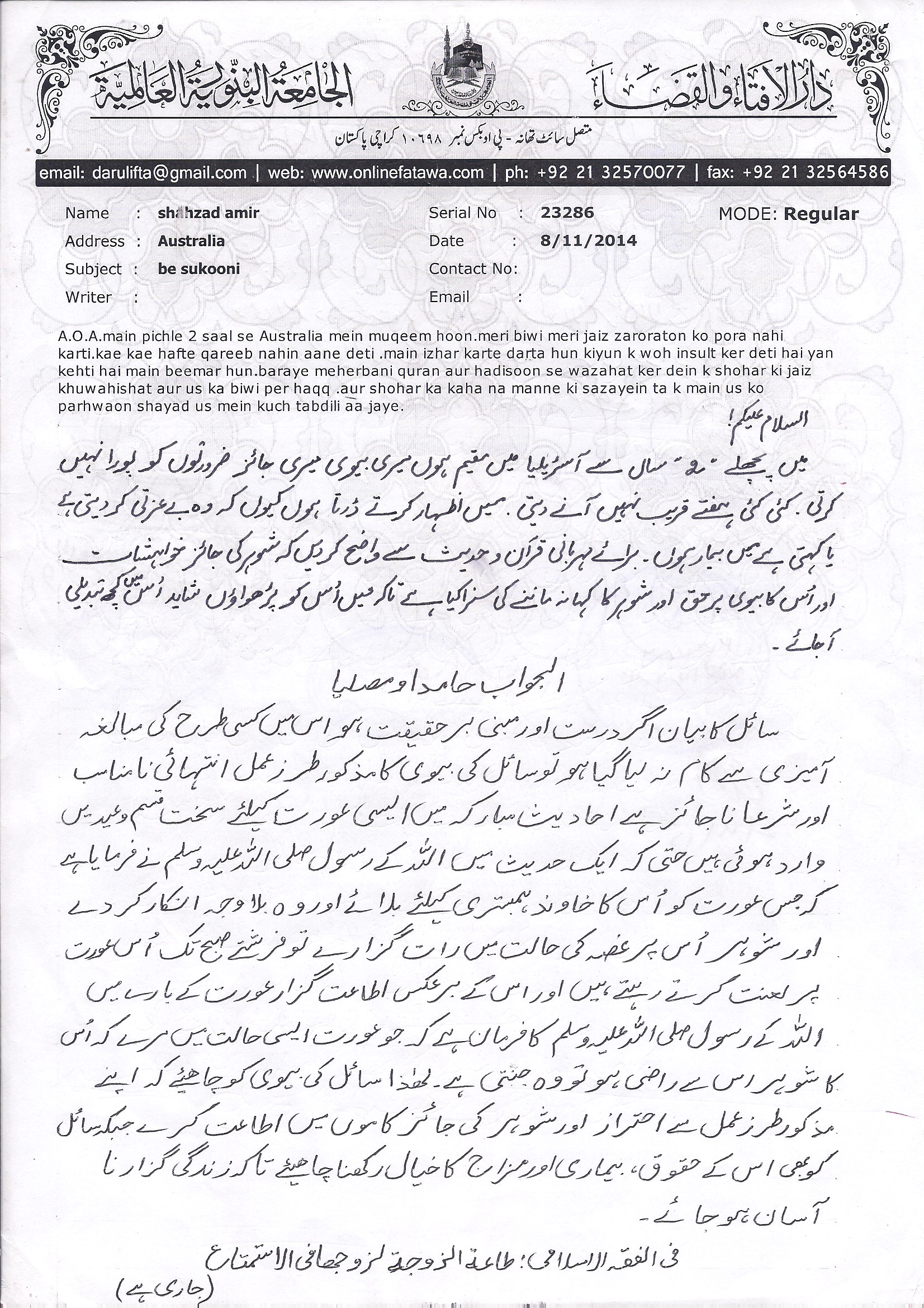 بیوی کا شوہر کو قریب نہ آنے دینا