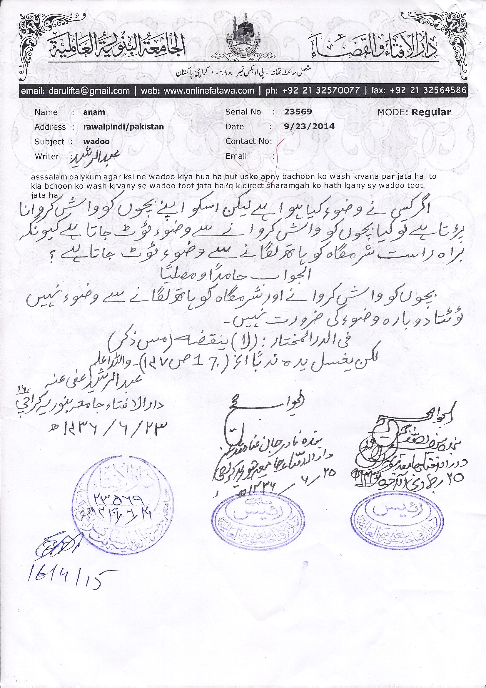بچوں کو دہلاتے وقت شرمگاہ کو ہاتھ لگنے سے وضو ٹوٹ جاتا ہے؟