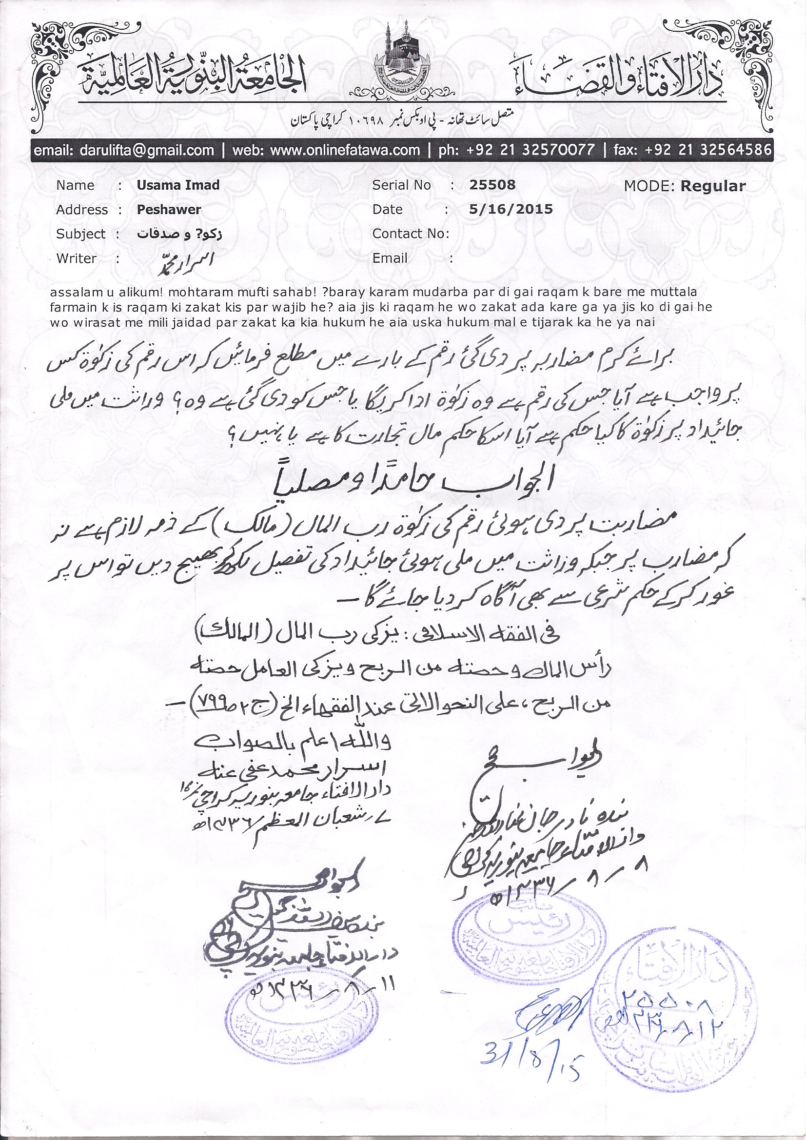 مضاربہ پر دی ہوئی رقم پر زکوٰۃ