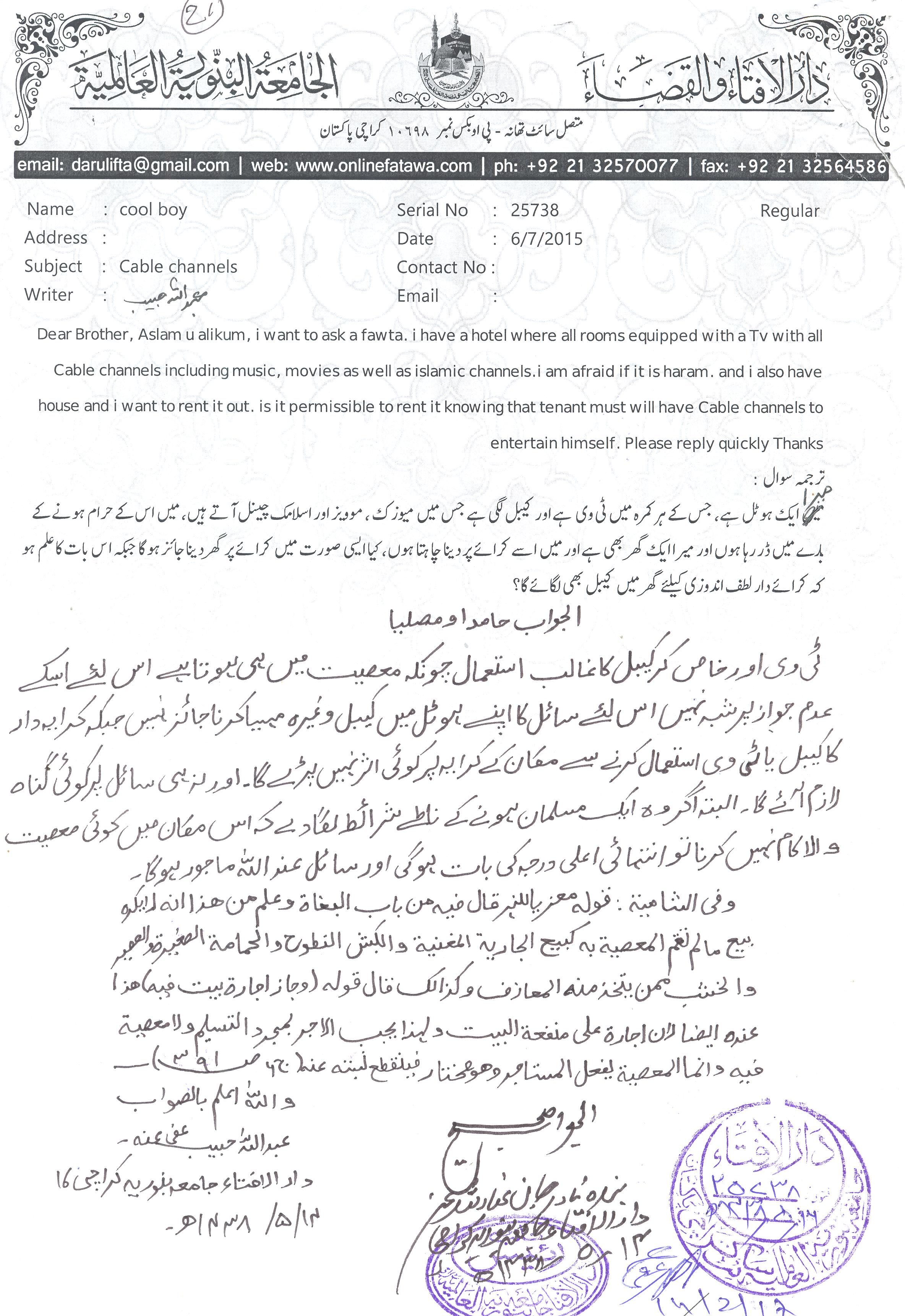 ٹی وی کے بارے میں فتویٰ