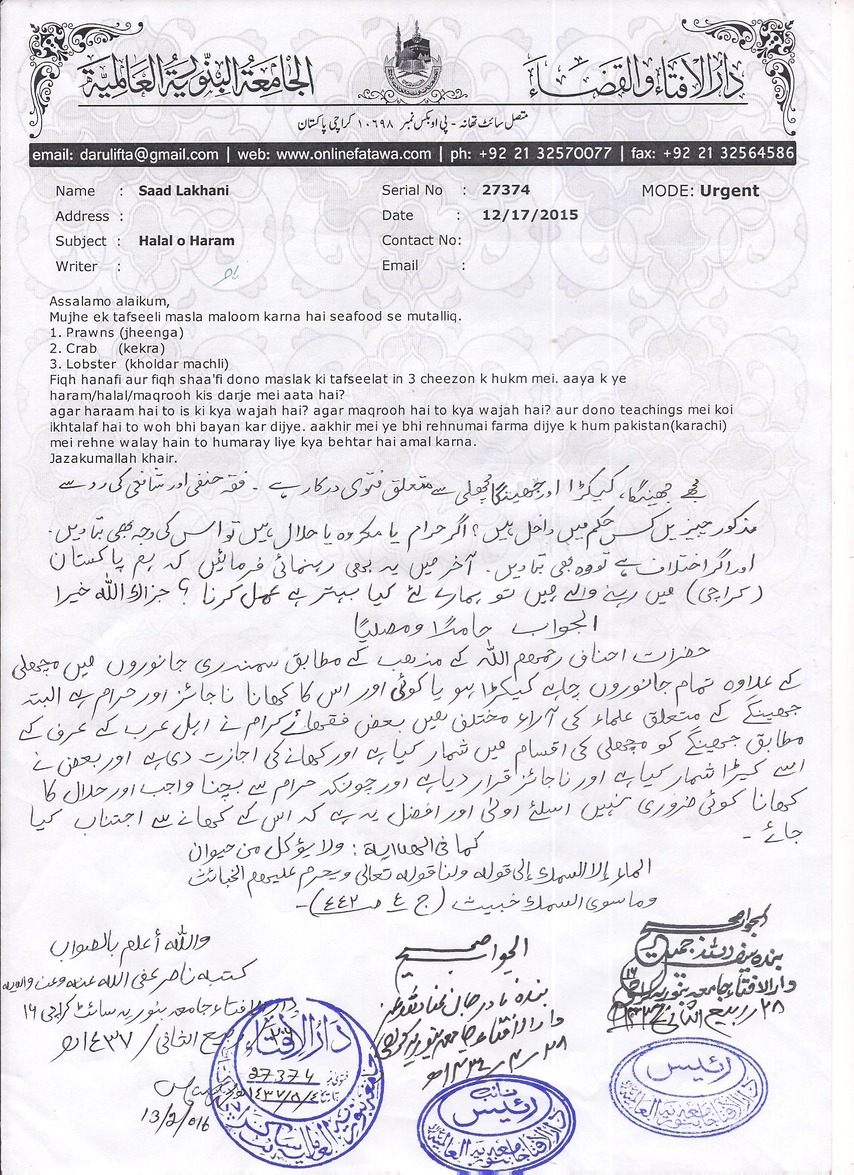 جھینگا ، کیکٹرا اور سمندری بچھو - Prawns, Crab, Lobster - حلال ہے یا نہیں