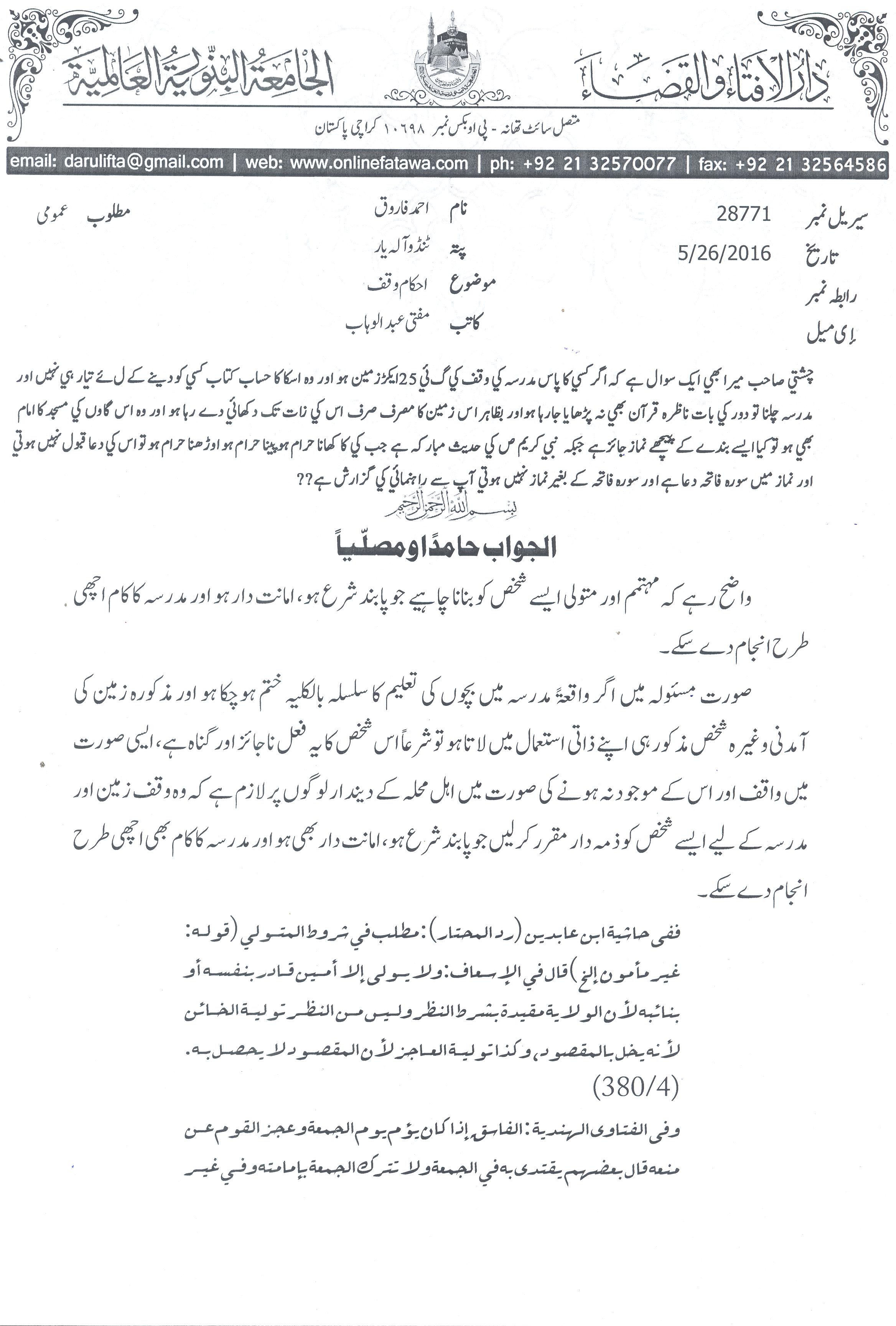 • وقف کردہ مدرسہ کو اسکول کی تعلیم کیلئے استعمال کرنا