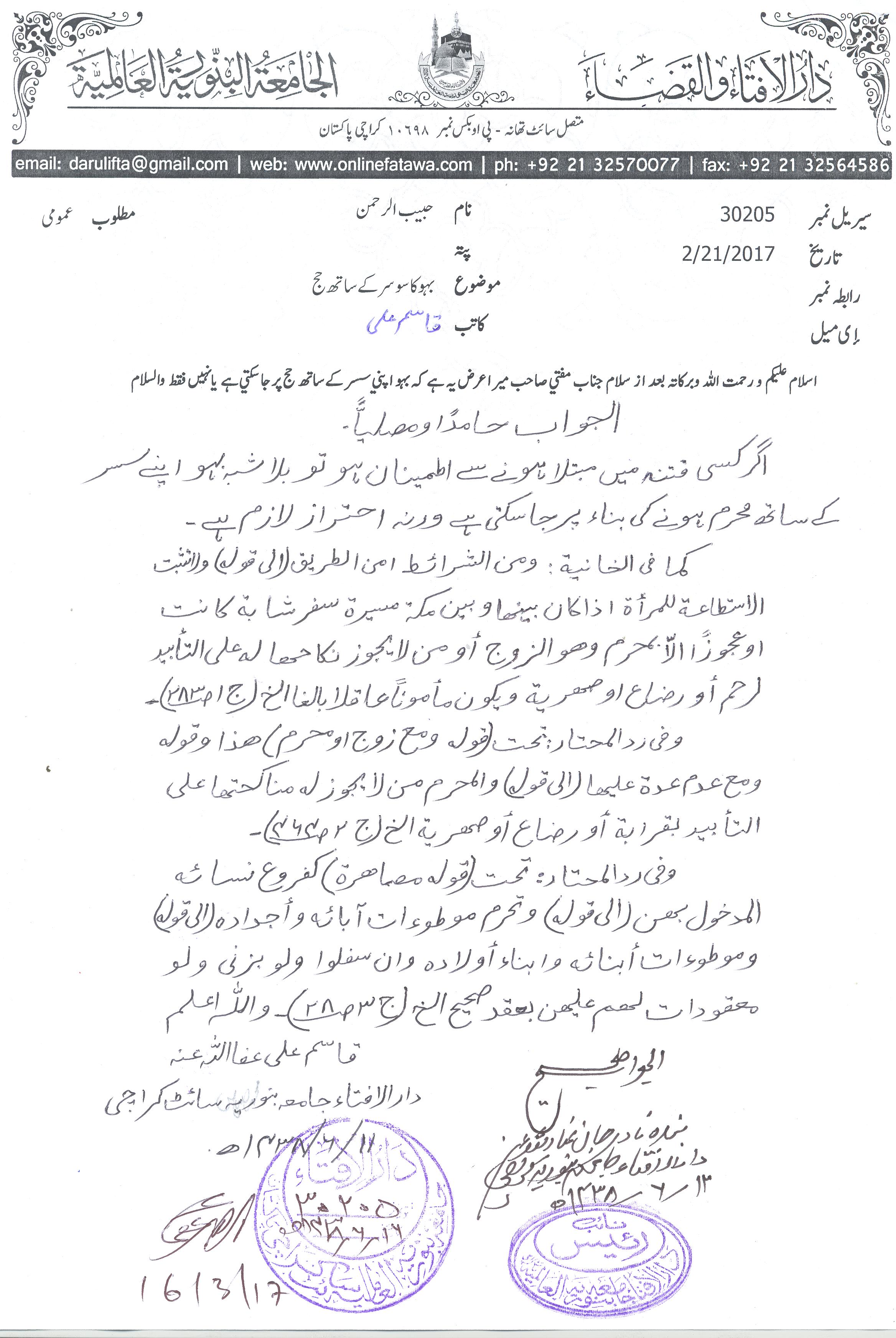 شوہر کے بھتیجے کے ساتھ حج و عمرہ پر جانا