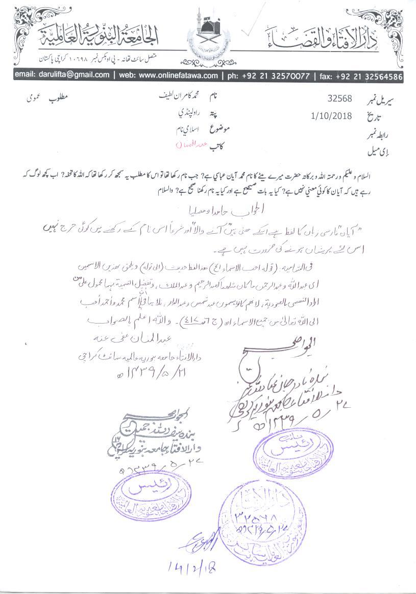 عمرہ اور ایمان نام رکھنا کیسا ہے ؟