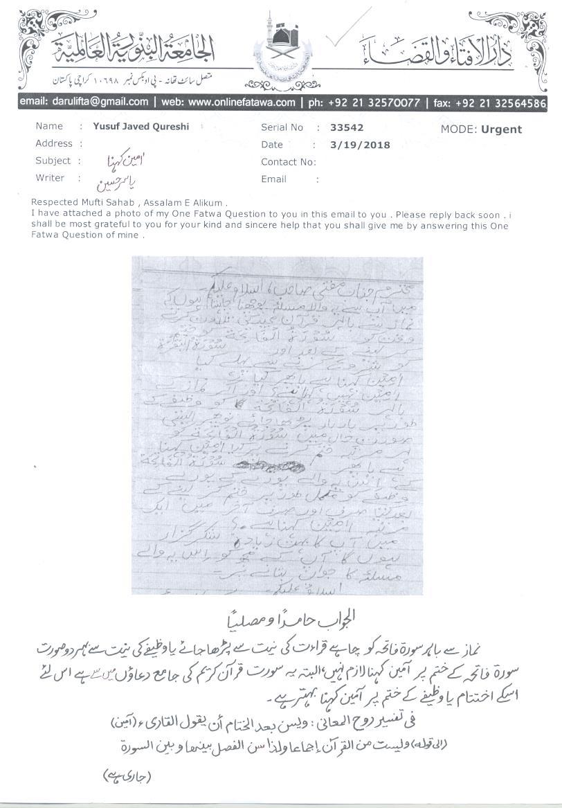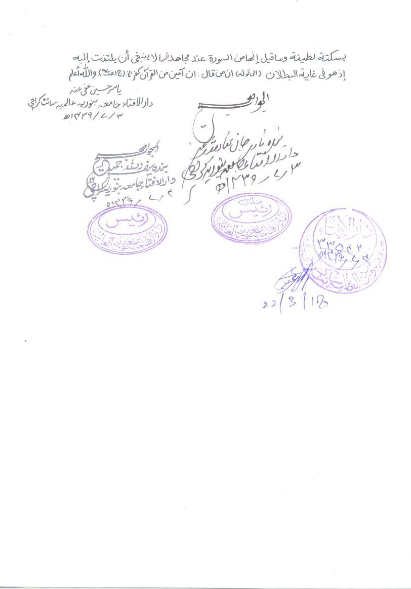 سورۃ فاتحہ کے مکمل ہونے پر آمین کہنا