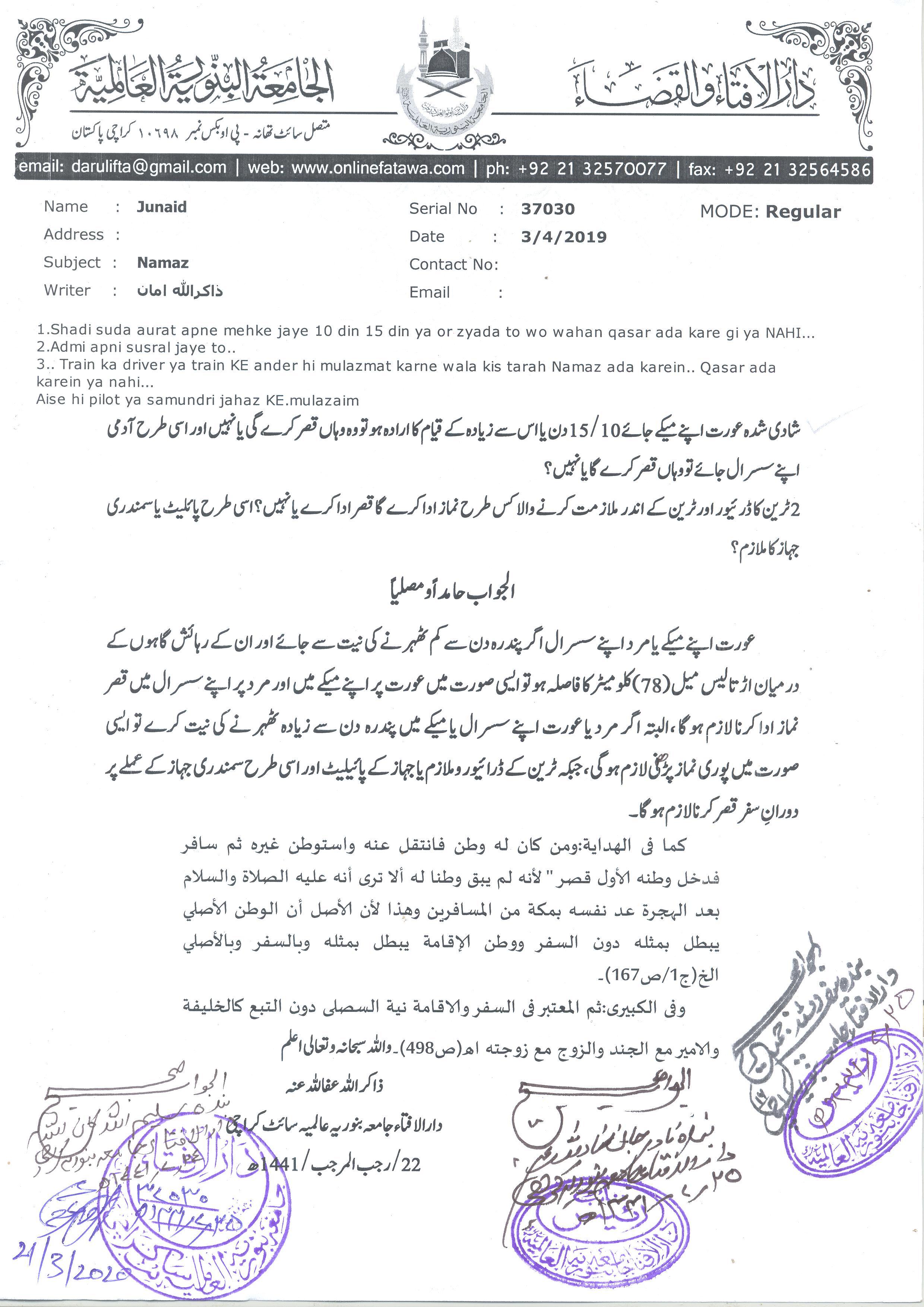 پاکستان ریلوے کا گارڈ مسافر ہے ؟ قصر کرے گا یا پوری نماز پڑھے گا ؟