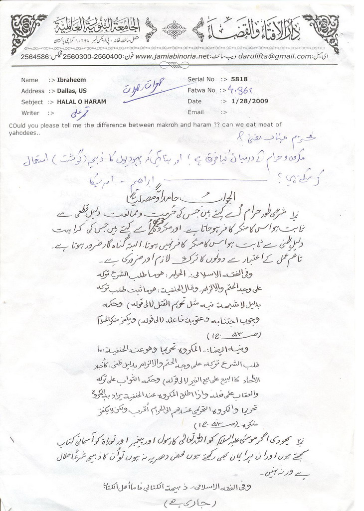مکروہ اور حرام میں فرق - کیا یہودی کا ذبیحہ حلال ہے ؟