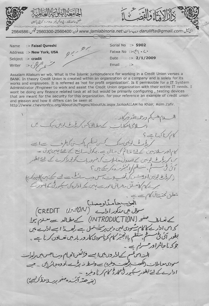 سودی بینکوں میں اکاؤنٹنگ کی ملازمت کا حکم