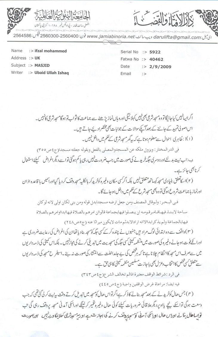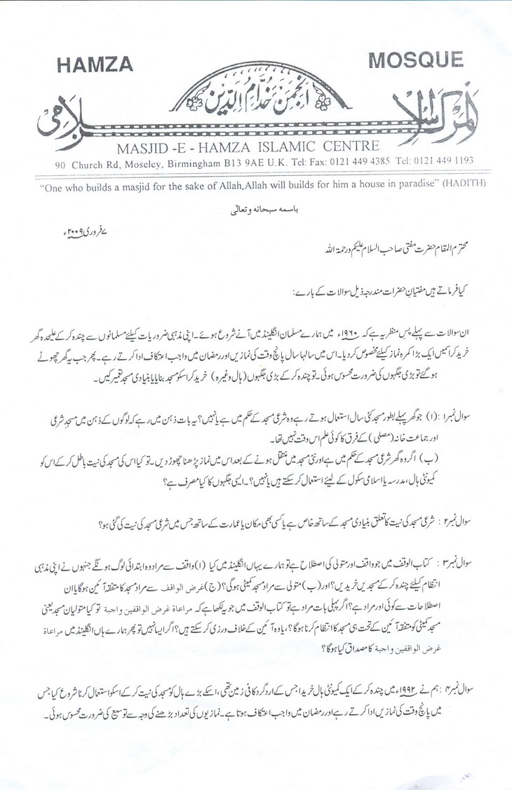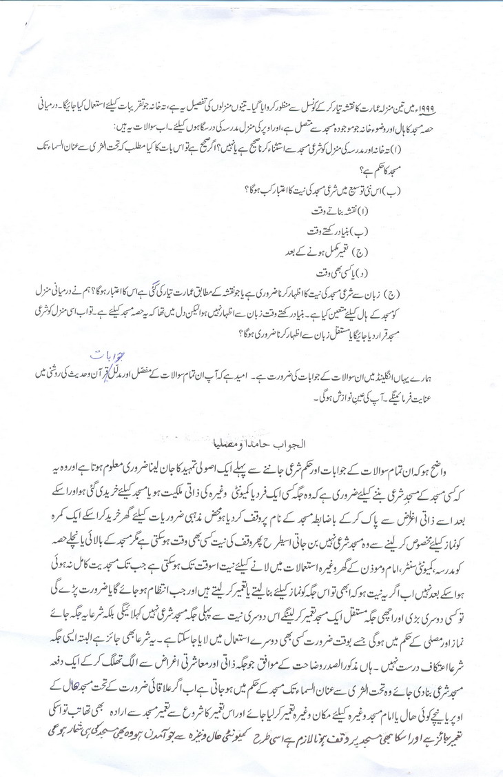 • مسجد کے لئے وقف زمین کے متعلق کچھ معلومات