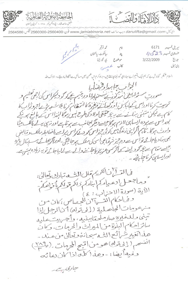 کسی کا بچہ لے کر پالنا شادی کرانا اور جائیداد میں حصہ دلوانا