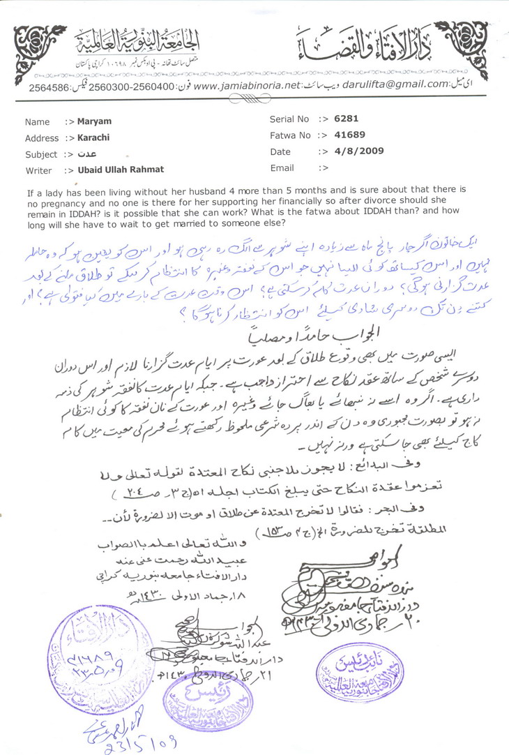 • نوکری کی وجہ سے عدت میں نہ بیٹھنا