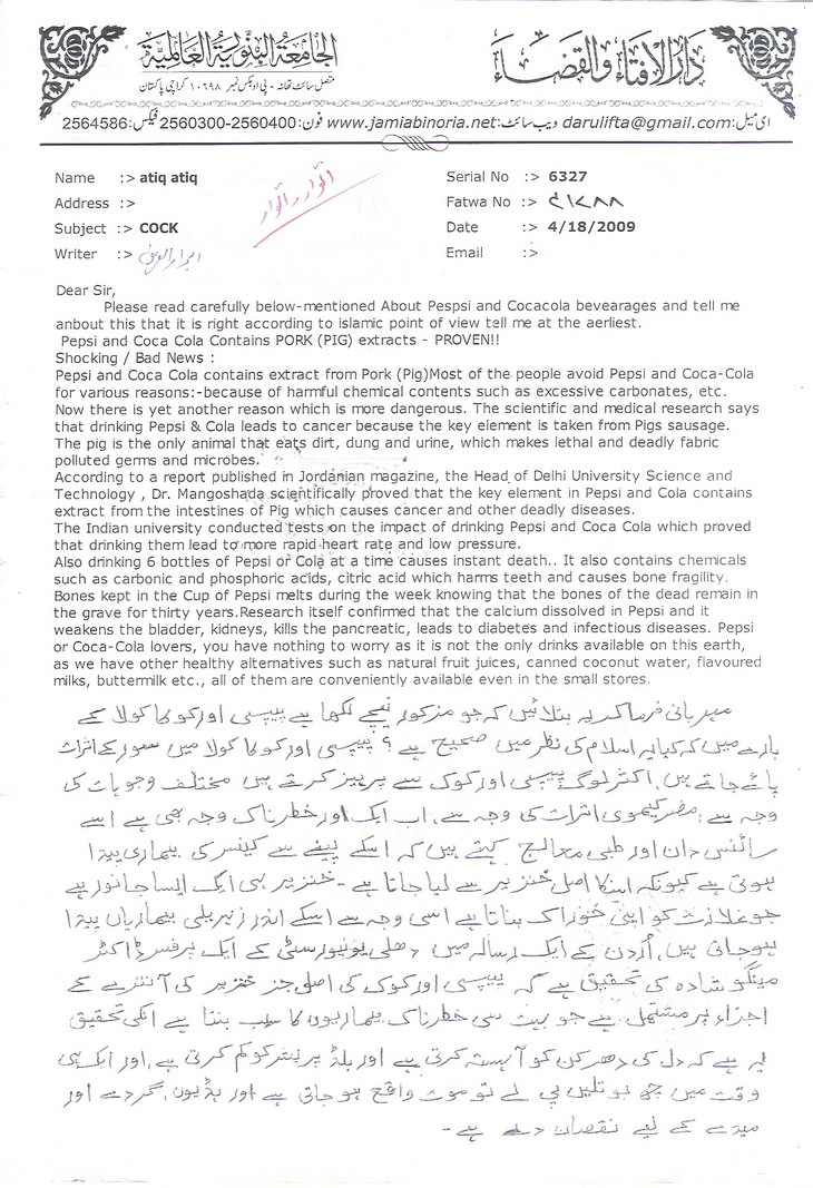 کوکاکولا اور پیپسی کا اسلامی نقطہ نظر سے حکم