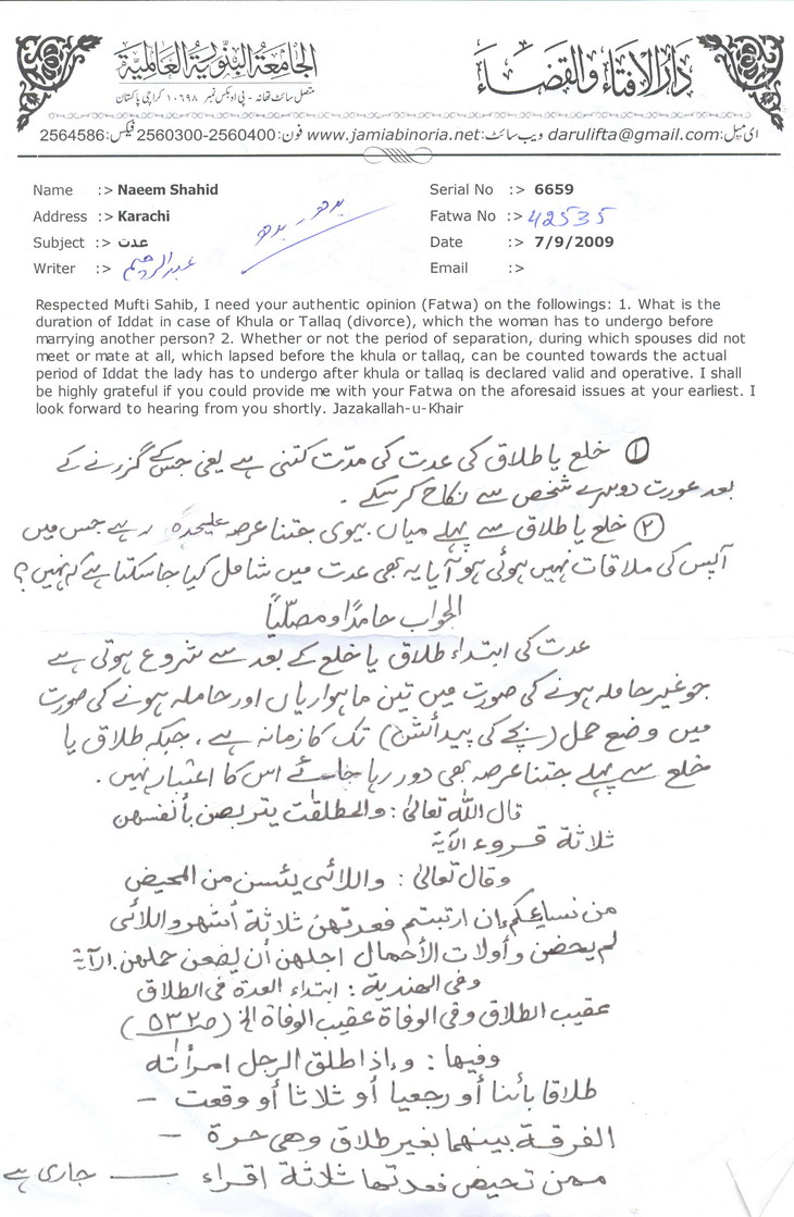 خلع کی صورت میں عدت کی مدت اور عدت کے احکام