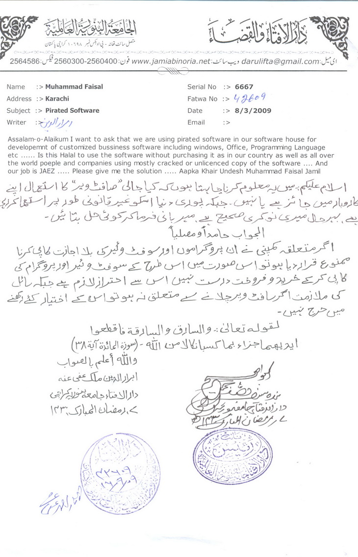 جعلی سافٹ ویر کی خرید وفروخت اور استعمال کا حکم