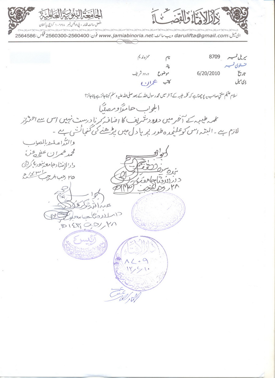 کلمہ طیبہ کے آخر میں محمد رسول اللہ کے بعد "صلی اللہ علیہ وسلم" کا اضافہ کرنا ؟