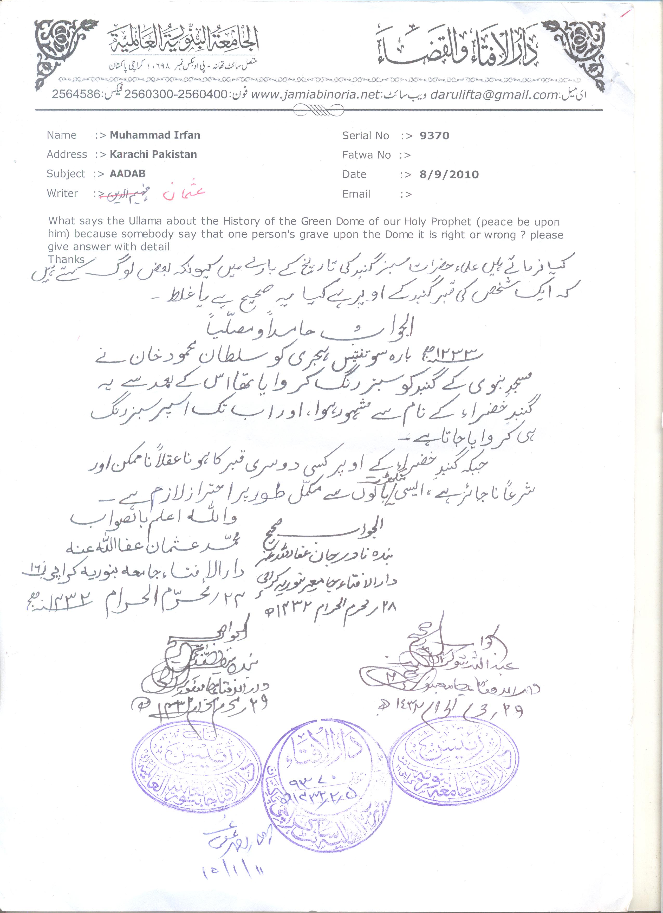 فتوی نمبر 9370کی تصدیق کریں