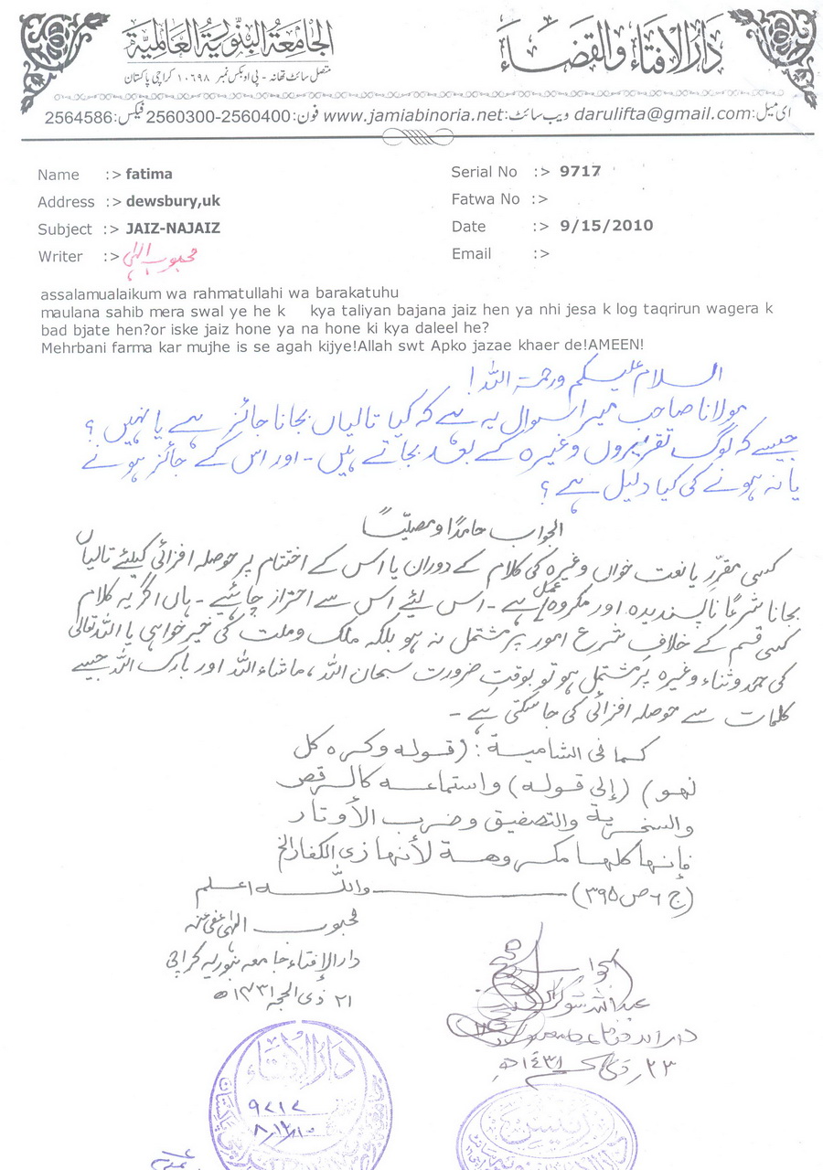 تقریر یا حمد و نعت میں تالی بجا کر داد دینا